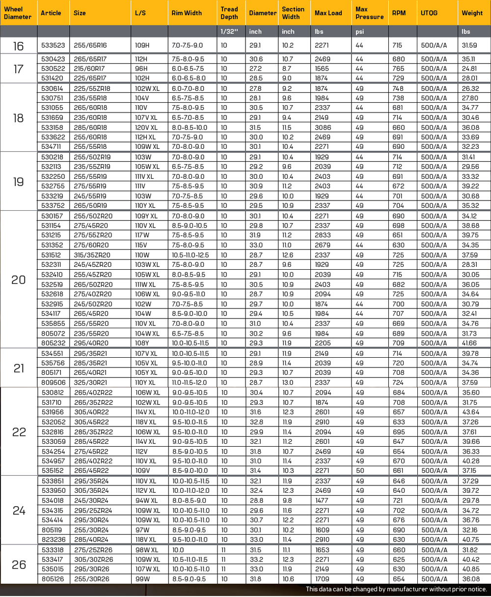 Size: 305/45R22