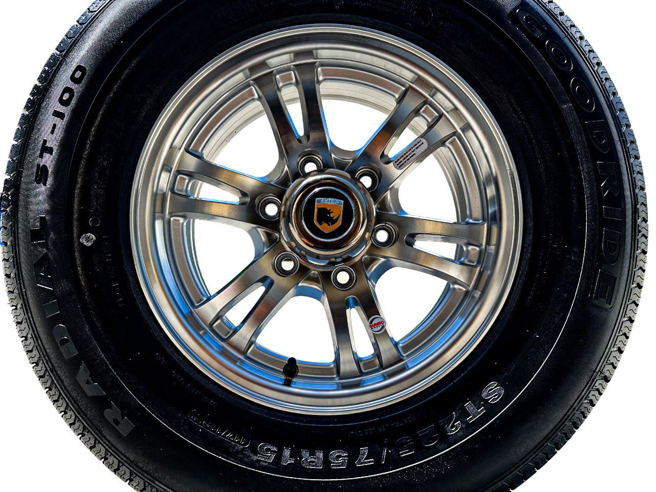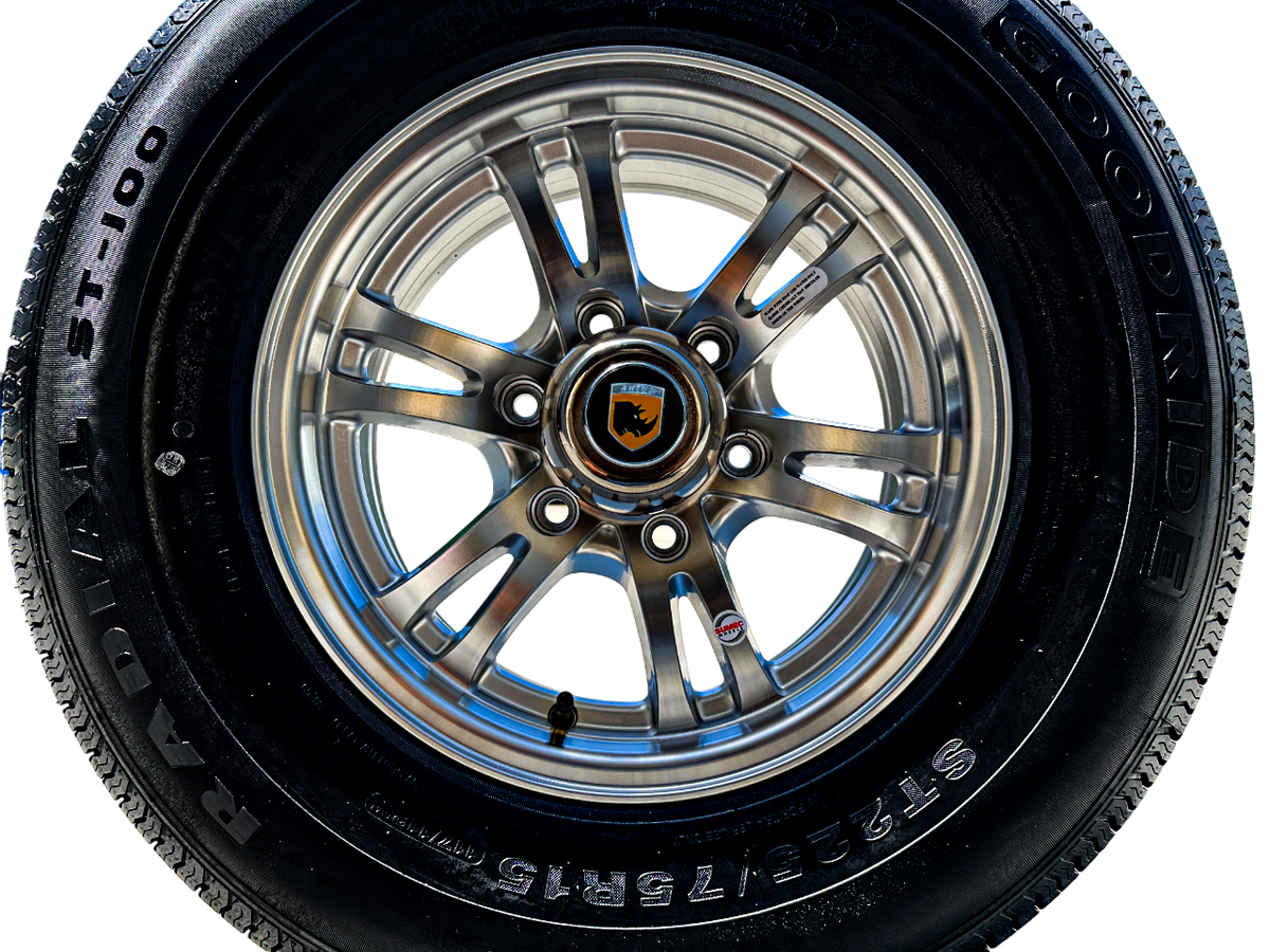 SILVER MACHINE FACED 15X6, 6X5.5 SUJA SMF Aluminum Trailer Wheel